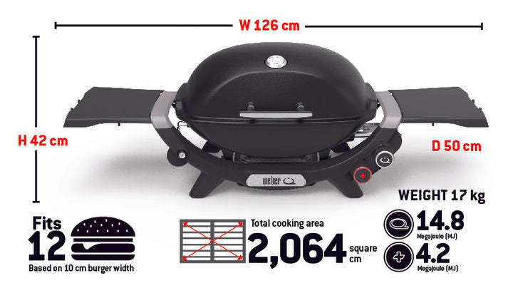 The Weber Q+ Premium (Q2800N+) 2 burner gas barbecue is big enough for every day, but still compact enough to take down to the park for a BBQ with friends.